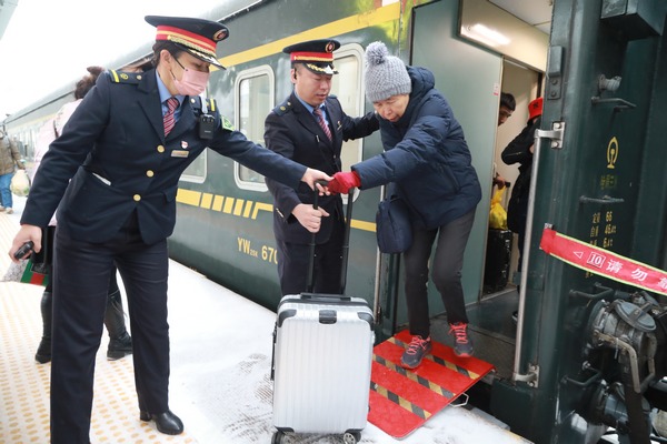 與此同時(shí),哈鐵組織各車站增派工作人員,加強(qiáng)旅客安全出行引導(dǎo),增開窗口,方便旅客辦理購(gòu)票等相關(guān)業(yè)務(wù)。與地方交通部門協(xié)調(diào)聯(lián)系,加強(qiáng)車站同地鐵、公交、出租車的接駁。做好防寒保暖工作,保持列車客室和候車室溫度適宜。哈牡高鐵臨時(shí)增開6列動(dòng)車組列車,黑龍江省內(nèi)旅客可選擇高鐵接續(xù)出行。